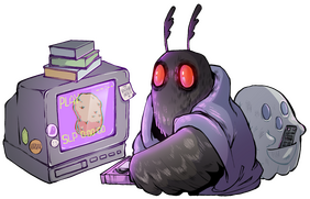 β’ They've grown a love for Mothman!! I find it adorable... mothman seems annoyed as they consistently wake him up trying to play. He created a game with them--> If they bring him a specified amount of coffee/items [often depending on his mood] then he'll wake up and try to bother ME instead; they seem to get a good laugh at that. If I don't do as Mothman says, the NightShades start getting rowdy. However, if they don't bring him enough items by the time he counts to 3 minutes- he gets mad and throws them... yes... throws them. Straight up... into the sky... They tend to stay up there for 5 minutes or so while the others are forced to stay silent for 2 minutes. You'd think being flung into the sky like that would make them stop pestering him... but... I think a few of them enjoy it. Either way, mothman gets new items for his collection and gets to pester me, OR he lets out his annoyance by tossing them. They all seem to have fun with this new system.